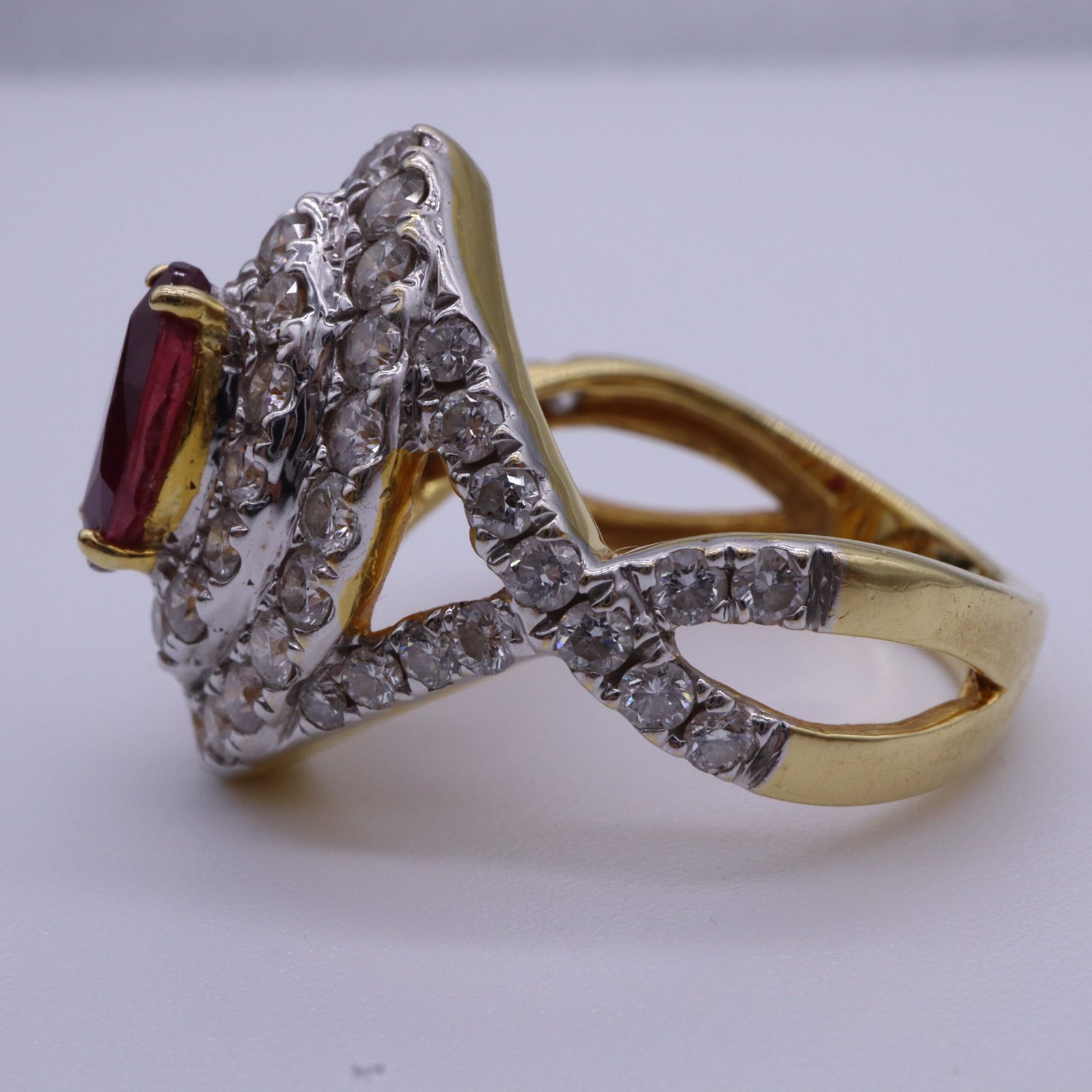18K Yellow Gold Mon-Design Ring with Marquise Ruby and Diamonds
