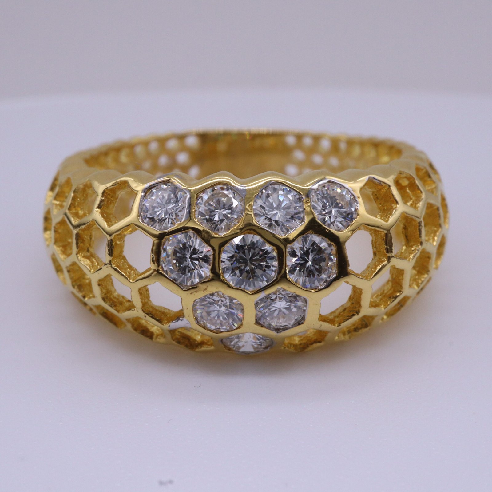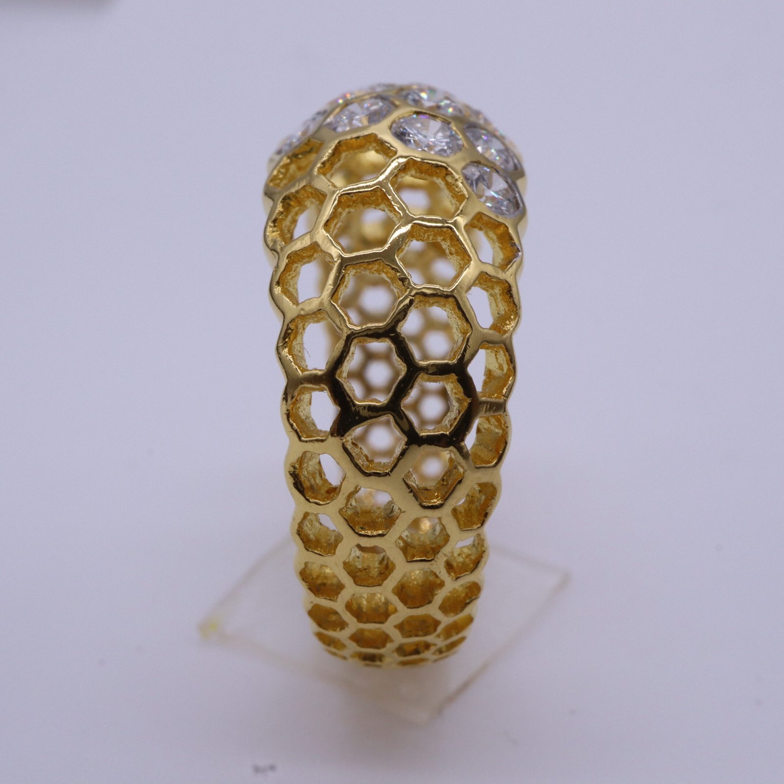 18K Yellow Gold “Honeycomb” Ring with 0.49 Ct. Diamonds
