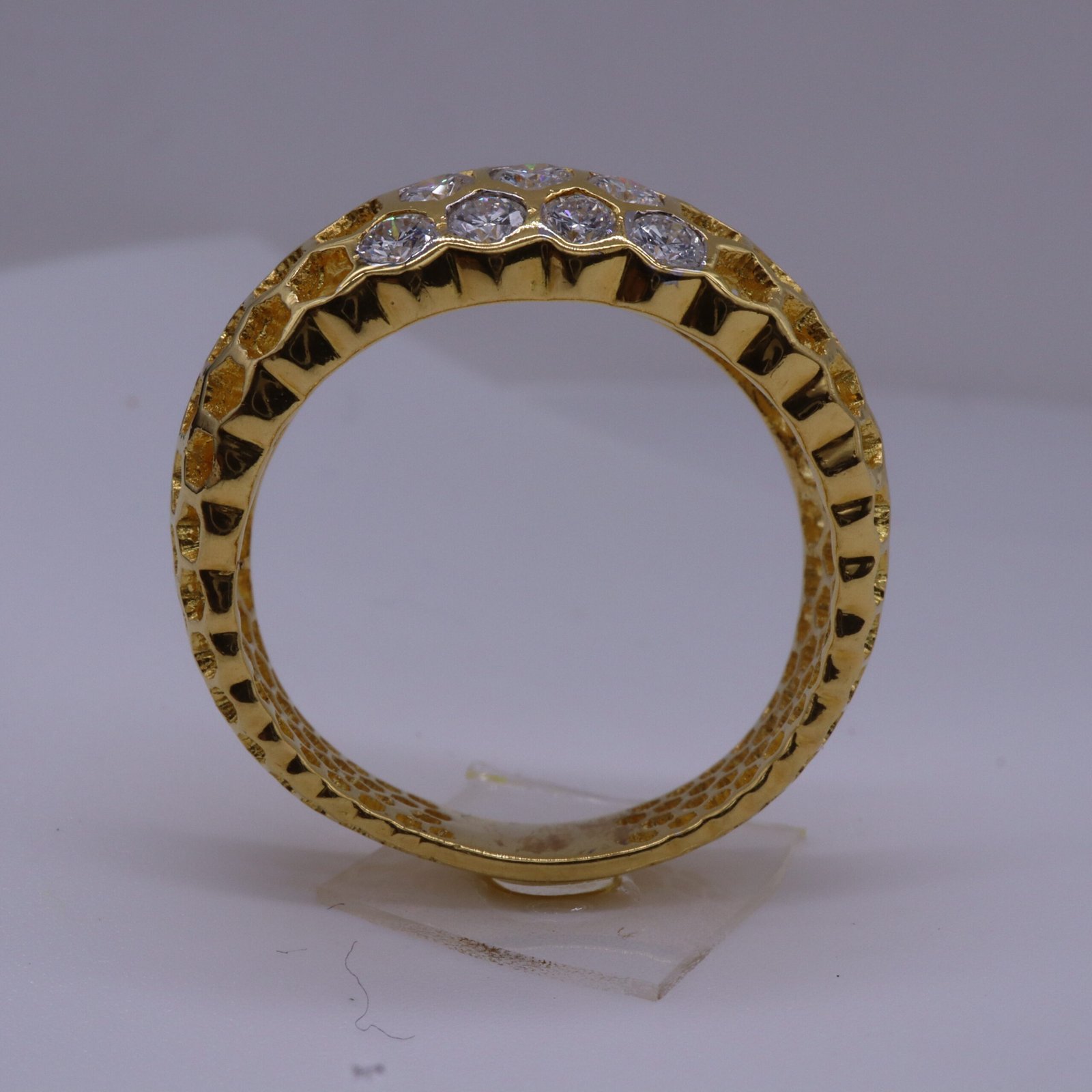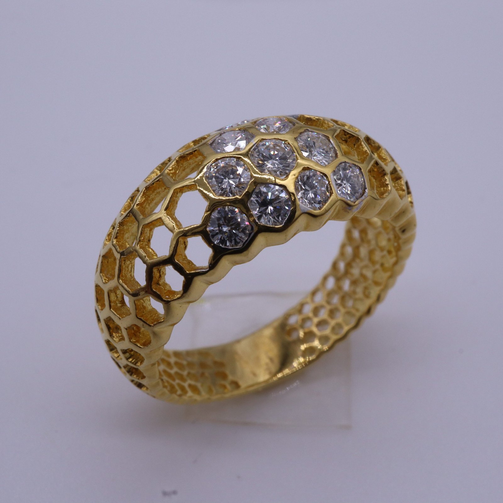 Crafted in 18K Yellow Gold, this Honeycomb-like ring features a magnificent 0.49 carat VVS1-graded 10 diamonds in a round shape, the diamonds are sourced from Belgium and come with GIA/ IGI/ GIT certification.