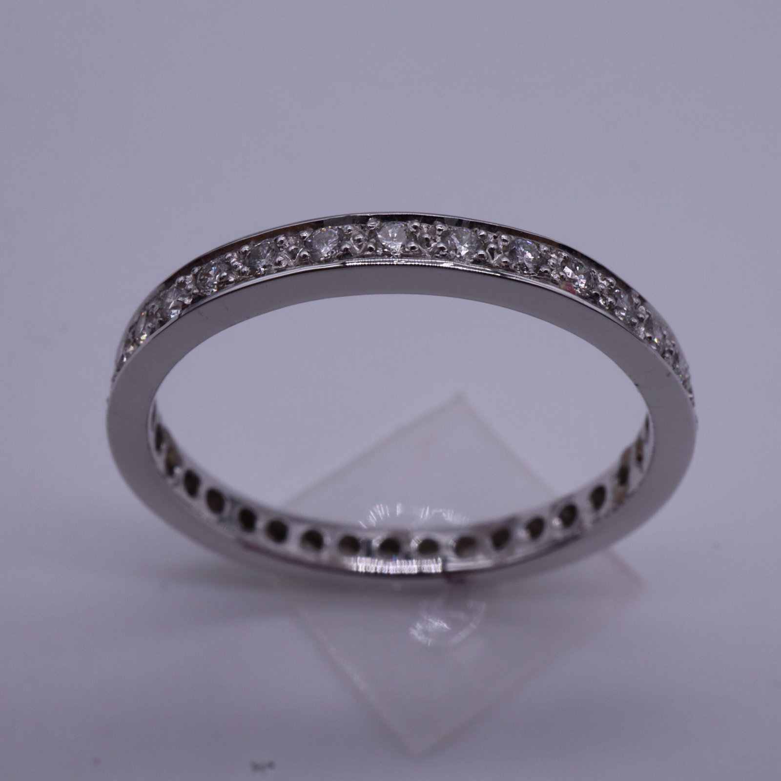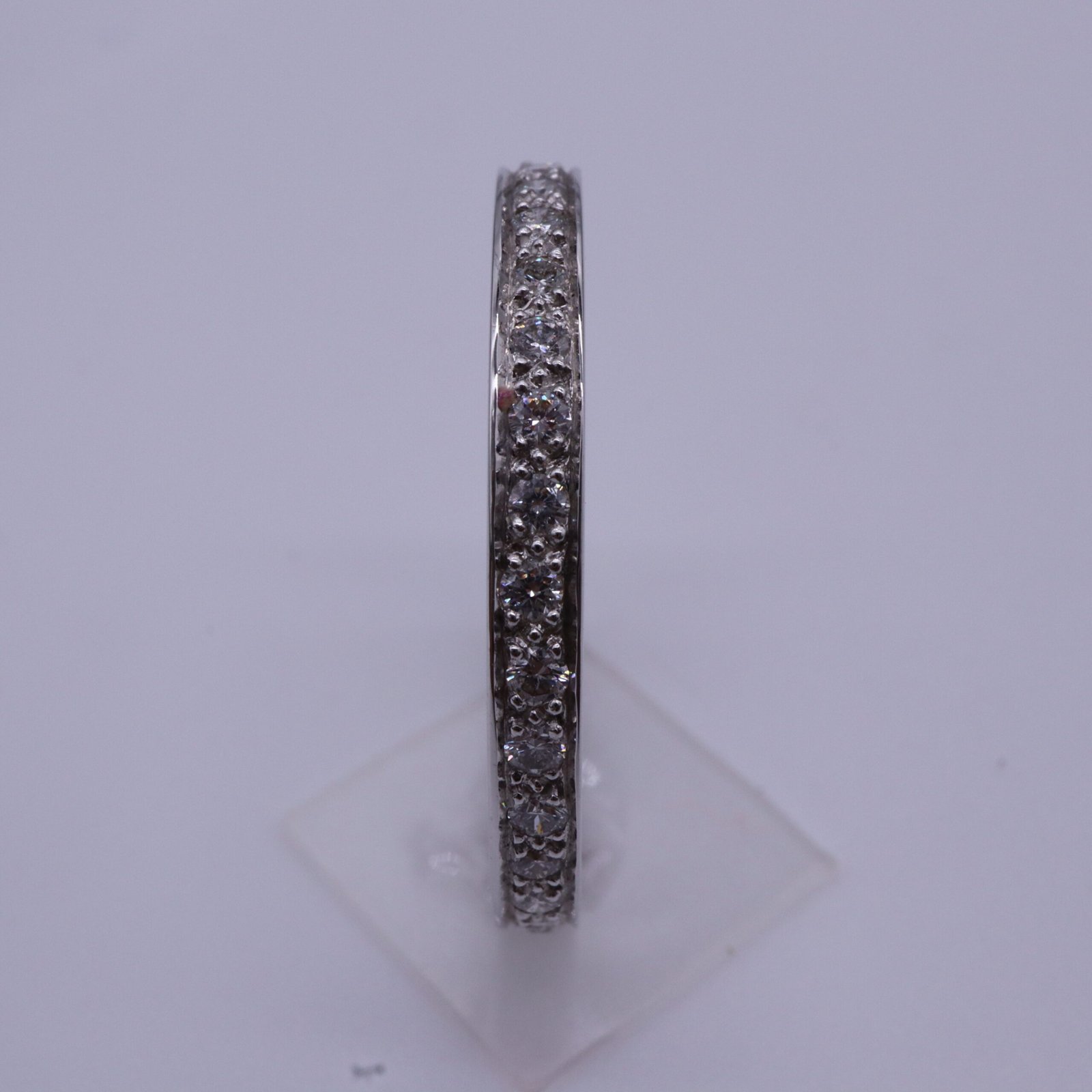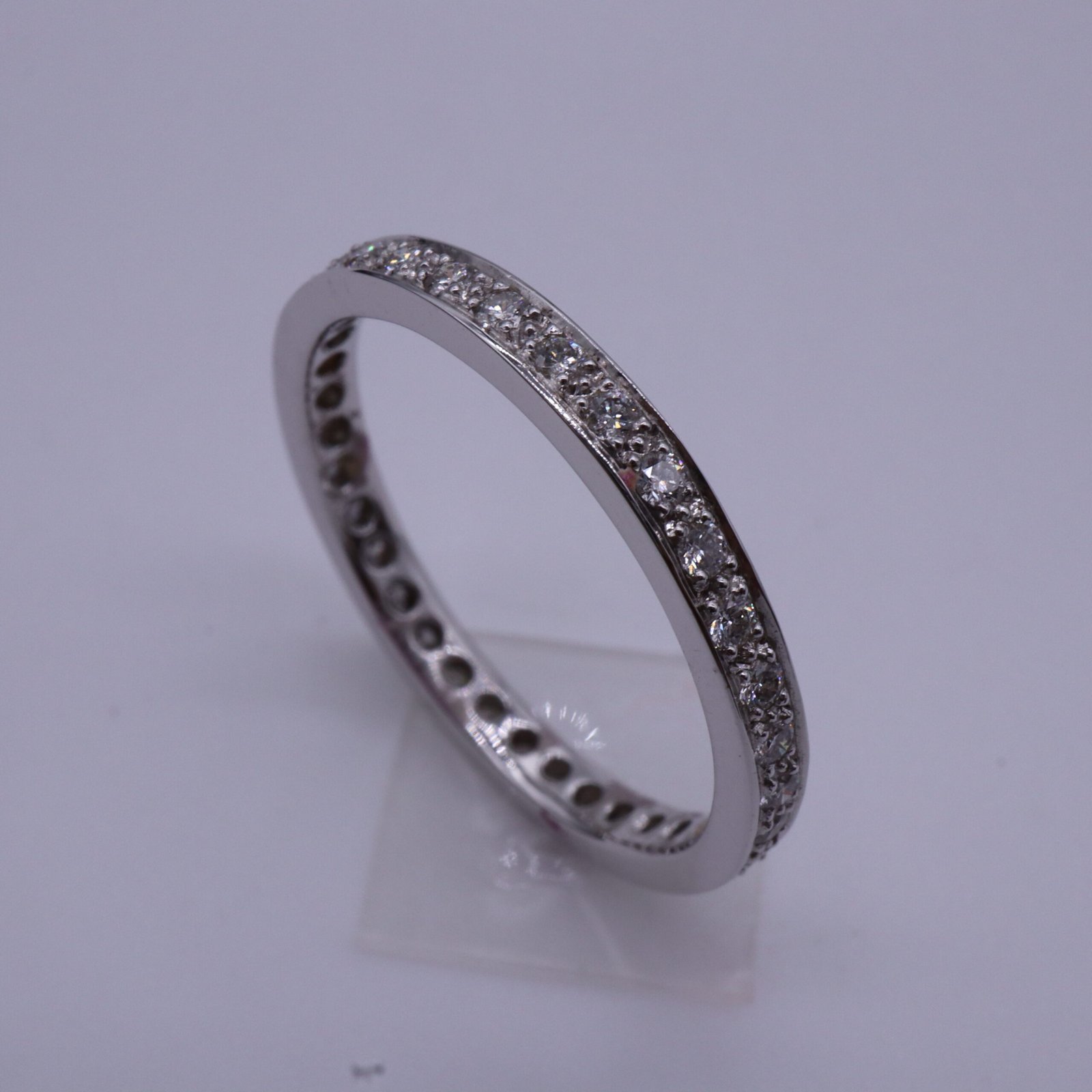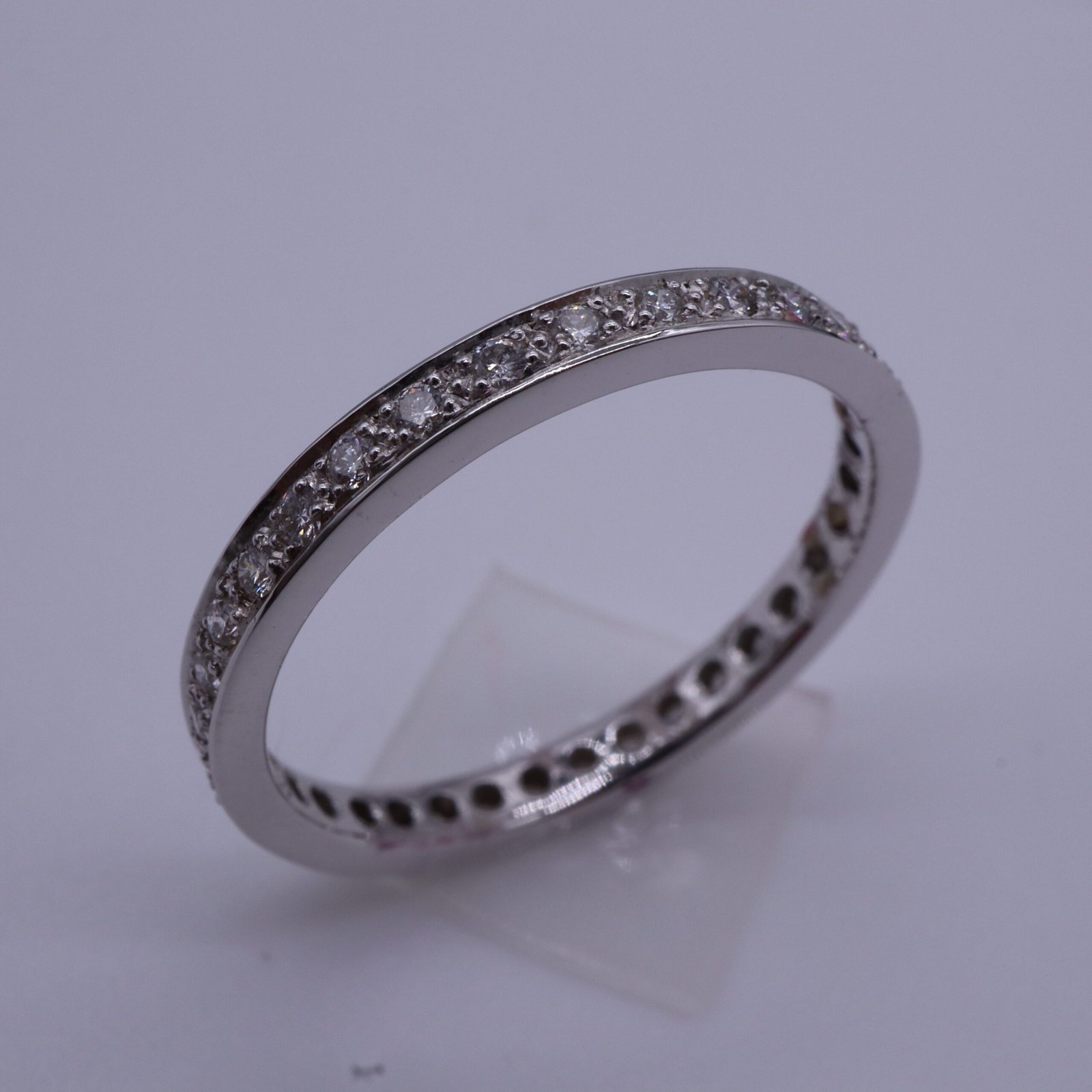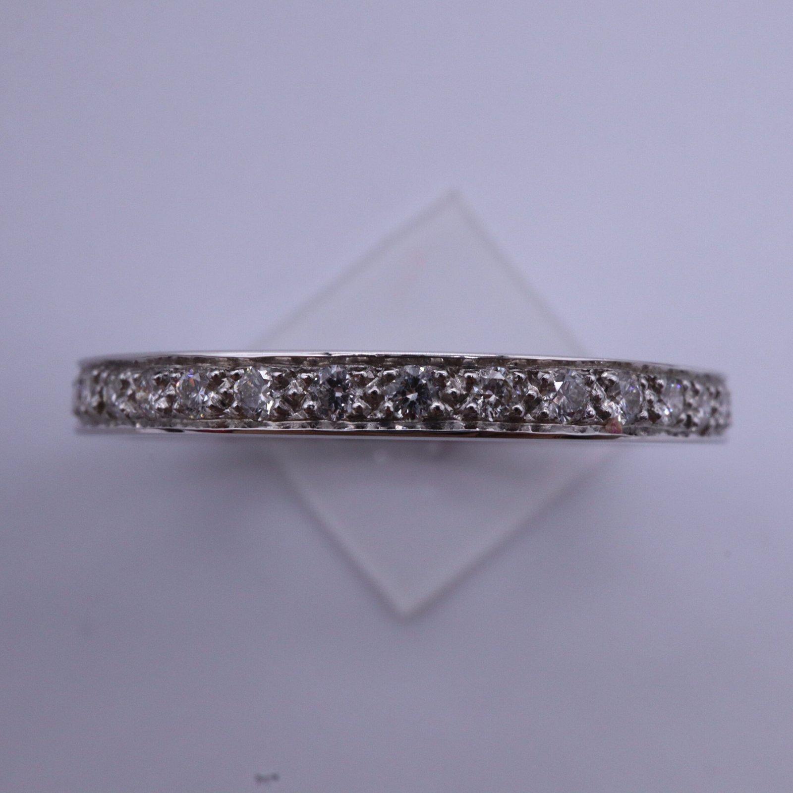 Crafted in elegant 18K White Gold, this ring features 34 diamonds, bringing the total diamond weigh of approximately 0.34 carats. Graded VVS1, the diamonds are sourced from Belgium and come with GIA/ IGI/ GIT certification. Weighing 2.10 grams and designed in size 6.50 (US), this timeless piece combines refined craftsmanship with sophisticated charm, making it a perfect choice for any occasion.