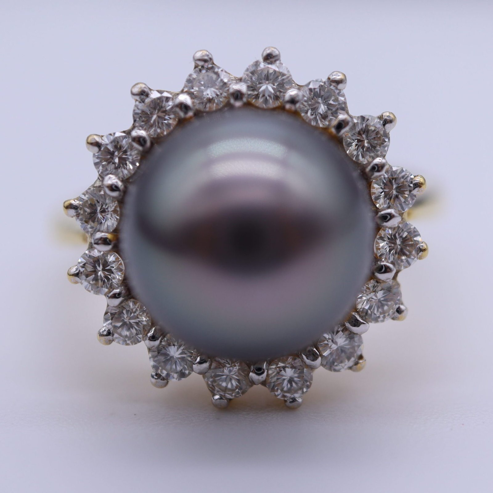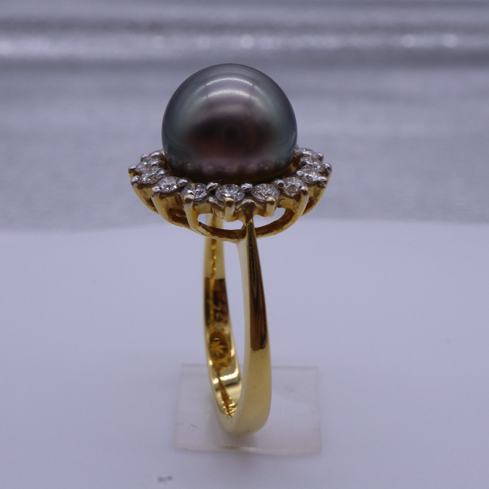 18K Yellow Gold Natural Tahitian Black Pearl with 0.48 Ct. Diamonds Ring