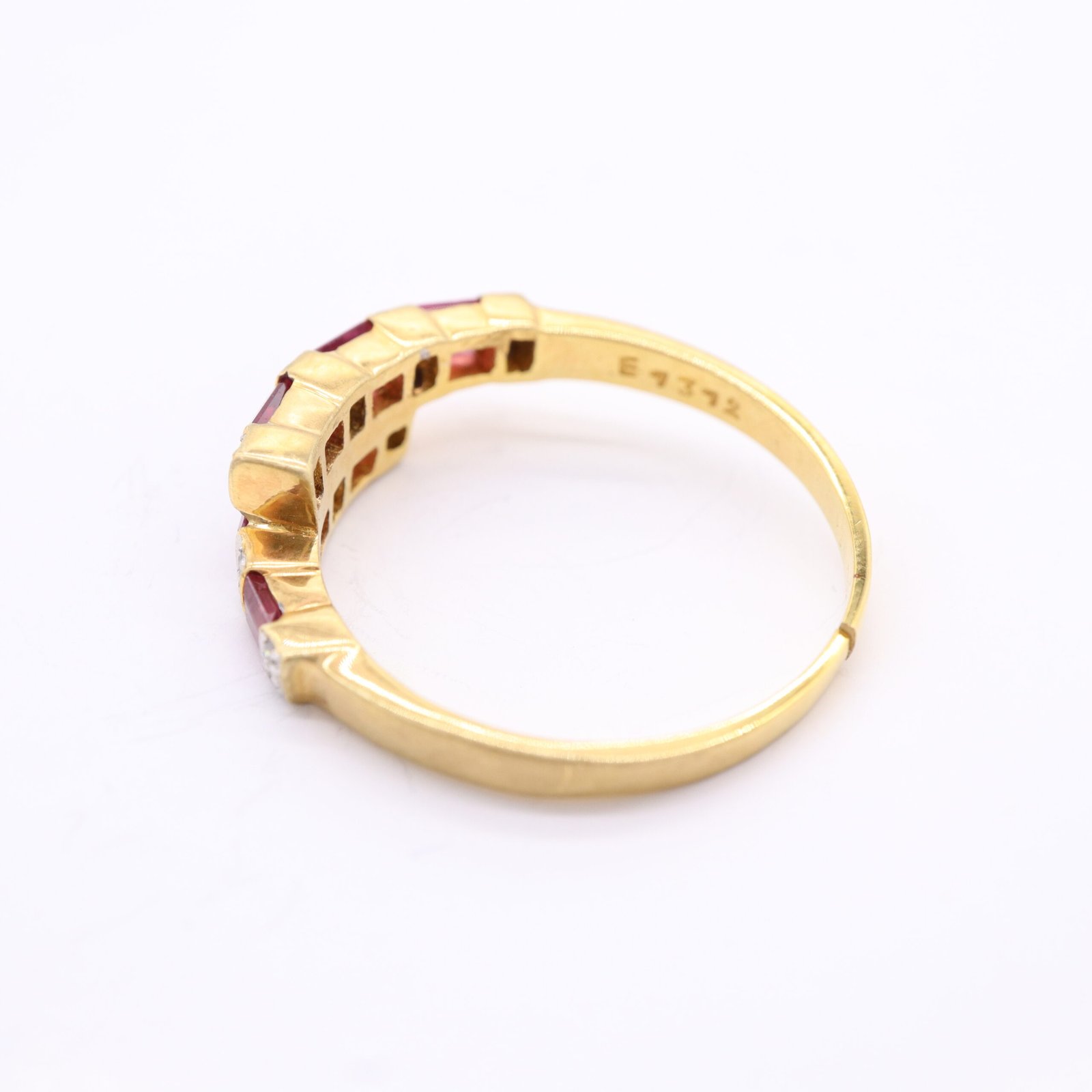 Elevate your elegance with this exquisite ZR263 Ruby&Diamond Yellow Gold Ring, featuring stunning Rubies and Diamonds in a Bar setting. The Pure Yellow Gold 18K band is meticulously handcrafted, showcasing VVS clarity and an excellent cut grade. Designed to fit Size 8 (US) / 57 (EU) / 16 (Asia) with an option for adjustability, this piece is perfect for special occasions like Anniversary, Birthday, Engagements, Milestone Achievements (and more!) making it a beautiful way to express your love and appreciation. Each piece comes with a seller warranty and GIA/GIT/IGI Certifications, ensuring the highest quality and authenticity. The RINNE collection rings are a timeless piece that represents the beauty and love of your relationship.